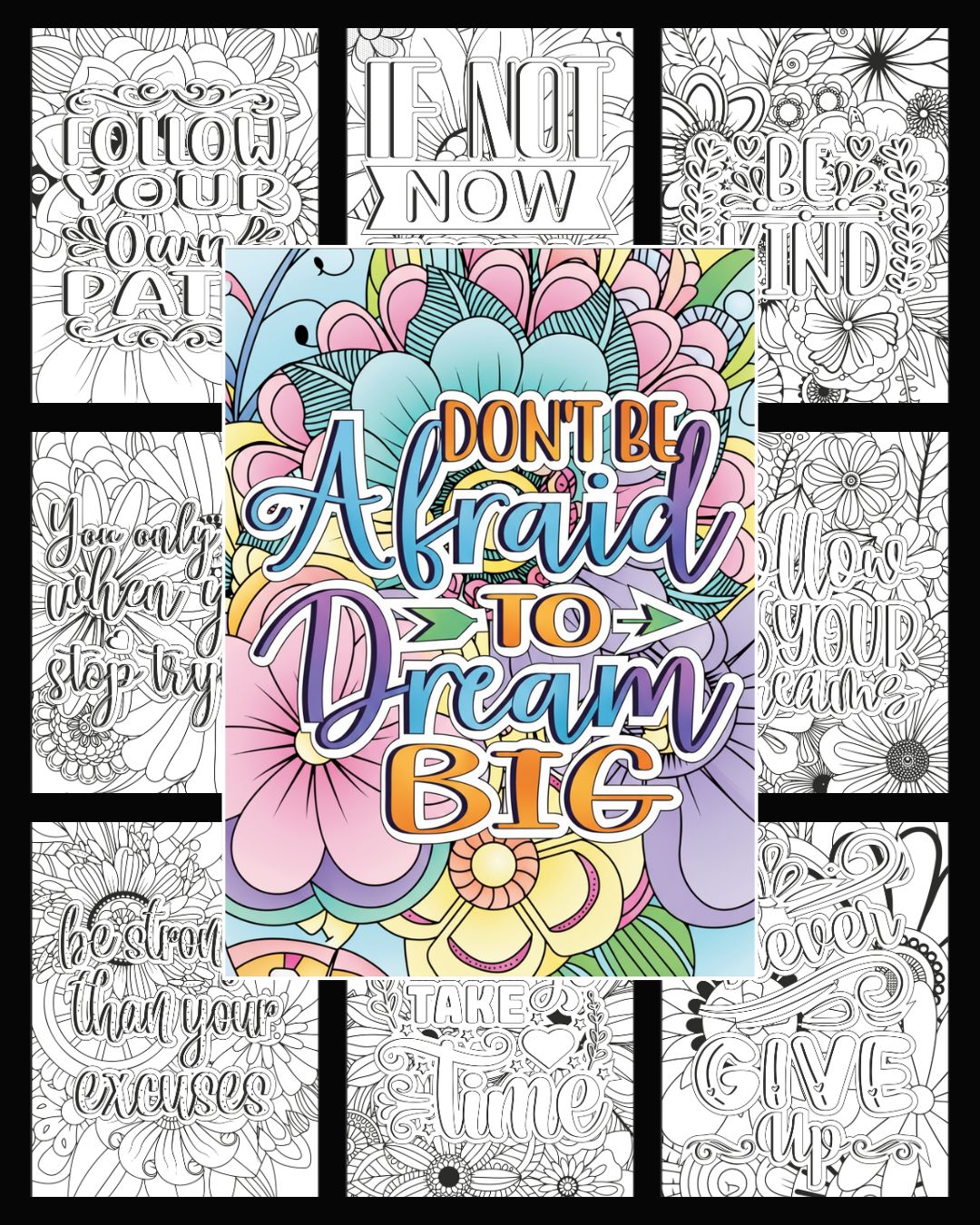 Positive messages sink in while coloring. Counters negative self-talk subconsciously.